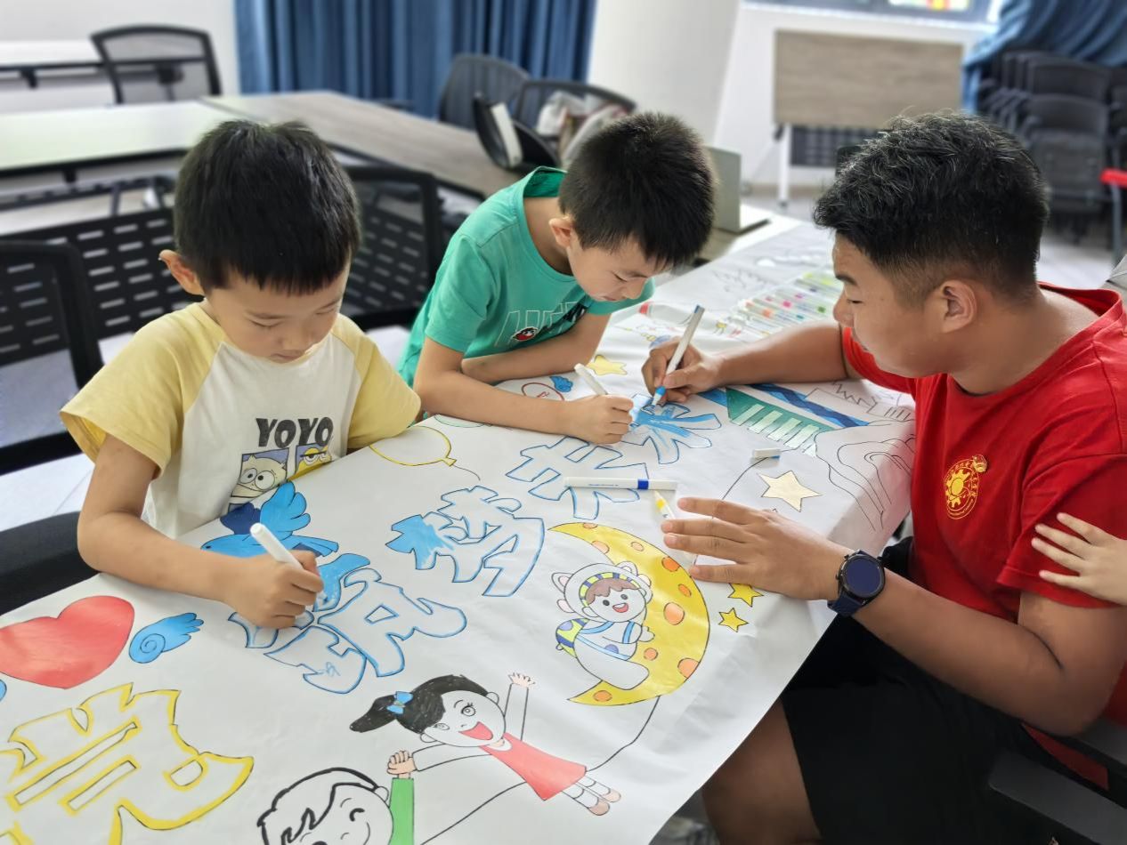 七月,正值党的生日,为弘扬红色文化,培养儿童对党和国家的深厚情感,实践队员们举办了一场“童心向党 筑梦未来”的主题绘画活动。队员们为孩子们介绍了党的光辉历程和伟大成就,悉心指导孩子们作画。他们用五彩斑斓的颜色描绘出心中的党旗、红领巾、祖国的大好河山以及未来的梦想。他们的画笔下,既有对党的深情厚谊,也有对未来的无限向往。