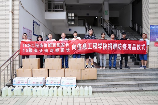 病毒无情,家长有爱。在全院上下众志成城抗击新冠肺炎疫情,共同做好员工返校复课的关键时期,6月17日,XC体育19会计班邓堃同学的家长、18工程造价班龚超员工的家长分别向分院捐赠了130斤84消毒液和2万个一次性医用口罩。防疫物资捐赠仪式在第二教学楼104室举行,分公司党支部书记罗建军、副书记王静波,分院经理刘曼、副经理万嵩及两位辅导员参加仪式。