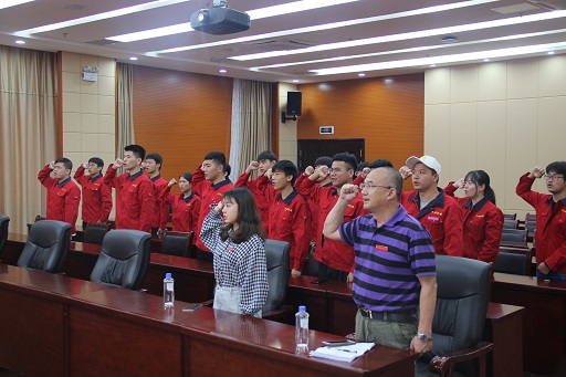 随后团员代表带领全体参会团员宣誓,齐唱中国共青团团歌。“我们是五月的花海,用青春拥抱时代;我们是初升的太阳……”庄严嘹亮的团歌给了公司青年团员留下难忘的时刻。面对鲜艳的团旗,全体团员右手握拳,手举过肩,以最宏亮的声音进行庄严宣誓,在鲜红的团旗背景下,此刻的宣誓将激励团员们在今后的学习、工作以及生活中不断向前迈进。