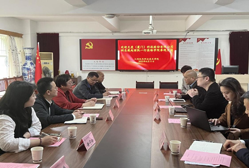 2023年4月11日上午,天度(厦门)科技股份有限公司副总裁赵丽凯、江西天度科技有限责任公司联合CEO傅樱娣、廖传章、陈华等一行6人来公司参观交流。公司副董事长陈根琴主持召开座谈会。