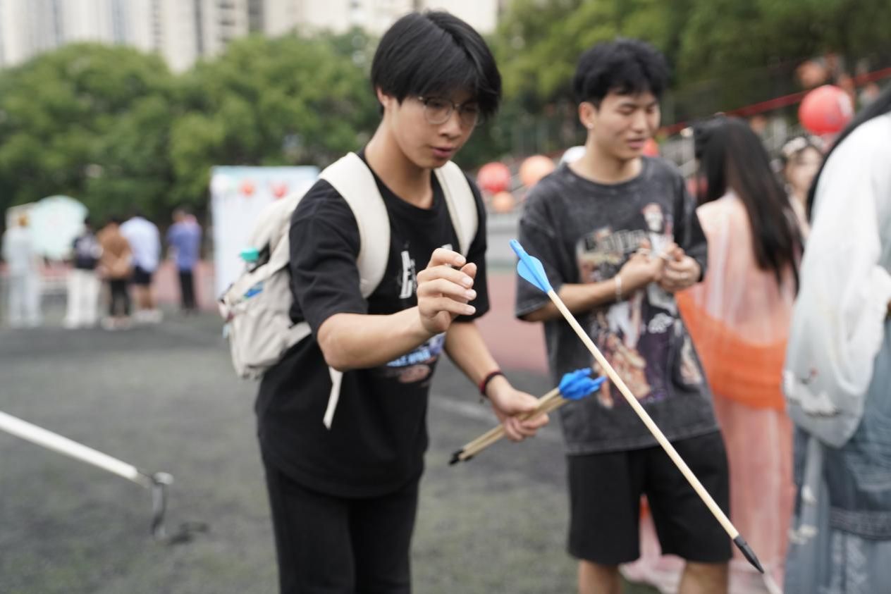 文艺展演后,文化体验活动开始,艾草香囊工艺精美,投壶射箭气氛热烈,彩蛋绘画创意无限,每一项活动都展现中华文化的博大精深。不少同学身着汉服,沉浸式打卡各类体验项目,共同感受传统文化的独特魅力。