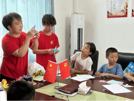 上午,旗帜队走进活动室,志愿者们告诉小朋友:“今天我们从折纸飞机、玫瑰花、凤凰、小飞鱼、大风车等当中来学习互动,从折纸、绘画中获得体验和感悟”。小朋友们顿时脸上露出了兴奋之色。随即,挑选喜欢的彩纸,开始对折、打开、折角……志愿者们不时进行着指导,和孩子们互动,奖励小礼品。在欢声笑语中,孩子们心情也逐渐放松了下来。随后,志愿者们拿出纸笔,让小朋友们画出爸爸、妈妈不在身边时大家最喜欢做的事情,写下最想对爸爸妈妈说的话,或者通过粘贴自己折纸的作品,对父母简述一个小故事,引导孩子们用自己的方式表达心中的爱与思念。通过此次手工绘画,大家进一步了解到小朋友内心深处的思念与孤独,也让孩子们释放了情绪和压力。交流过程中,志愿者们还会及时纠正小朋友的发音问题,提升他们的普通话水平。志愿者们还陪孩子们一起观看了防溺水、防火安全用电、防拐骗等安全教育片。