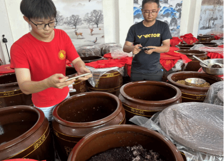 下午,在村支书的带领下,旗帜队志愿者们前往畲族兰家了解畲族的特色服装和饮食文化,参观了当地的品牌特色米酒制作工厂,学习了米酒制作工艺。通过采访米酒品牌创始人蓝春花,了解了“灶婆婆”糯米酒品牌背后的故事。在得知米酒也通过网络销售后,旗帜队结合自己所学专业,针对如何提高品牌知名度和提升产品销量,积极向蓝春花建言献策。