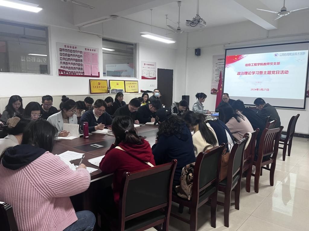 3月27日下午,XC体育教师党支部在第二教学楼204会议室召开政治理论学习暨主题党日活动,分公司党总支书记黄素玲、经理万嵩出席会议,支部书记吴丽华主持会议,支部全体党员、教师参加会议。